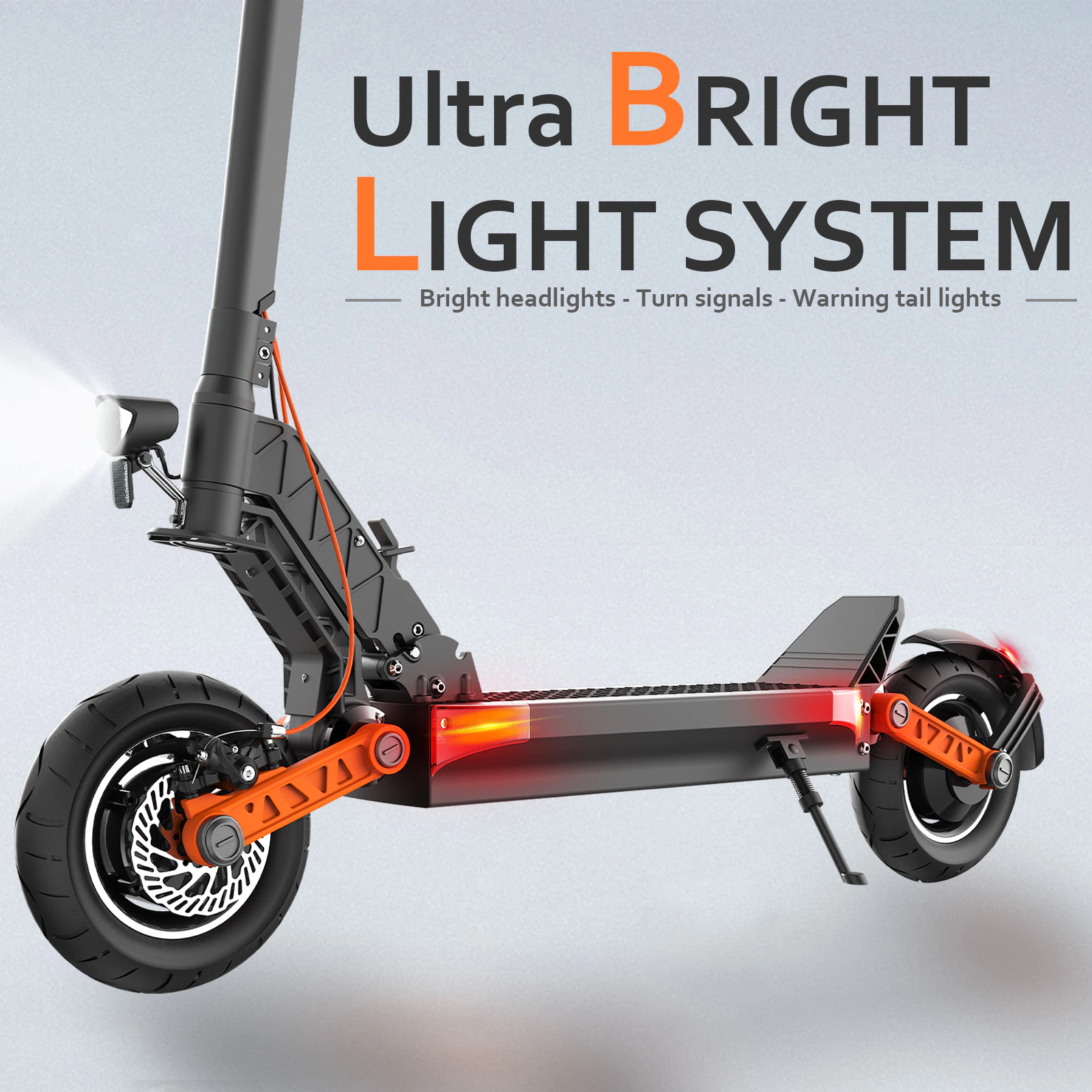 Long-Range Battery with Smart Power Management Several 18650 high-capacity lithium batteries deliver up to 85km of travel on a single charge. Smart battery management via the LCD displays the health of the battery pack and notifies you immediately if there are issues. Works as Simple as It Looks Every aspect of the S10-s is crafted with simplicity in mind. The scooter frame, components and accessories use the same geometric design language that puts usability and the user at the front. A single button kicks the scooter to life and the red design accents add modernity. The S10-s is made to look right, and feel right. Aerospace-Grade Aluminum Frame The sturdy frame is made of aerospace-grade aluminum, which has a low density and high structural strength. It also has excellent thermal conductivity and corrosion resistance for added durability. Controlled Acceleration Give the accelerator a gentle downward push and adjust the amount of pressure until you reach a comfortable speed. Ultra-Bright Headlights Headlights are essential for night riding, yet not all scooters have them. The S10-s features an ultra-bright 1.1W headlights with a range of up to 6 meters for added safety. Shock-Absorbing Tires for a Smoother Ride The large 10-inches front and rear tires have great shock absorption and anti-slip treads. Coupled with a 2*1000W brushless DC motor for stable power output, The S10-s is set to deliver a smoother riding experience. Cruise Control Technology Using the core cruise control technology in cars, our electric scooter uses a unique algorithm that receives signal input from speed sensors to maintain smooth and stable cruise control. This reduces tension and fatigue for riders, as well as optimizes battery for longer rides.