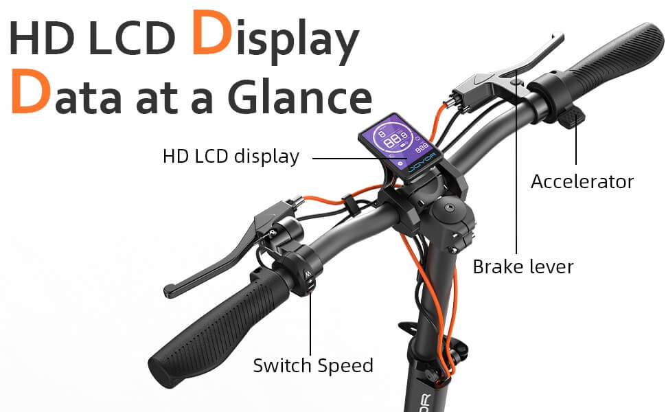 Motor: 600W Standard Load Capacity: 120kg Material: Aluminum alloy Speed: 25km/h (limited) Range: 40-55km Brakes: Front and rear disc brakes Cruise Function: Yes Voltage: 48V Battery: 13.0Ah Tire Size: 10” air tires Dashboard: Multifunction Color LCD Dashboard with a USB port